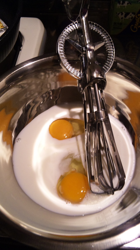 卵と牛乳を混ぜる。